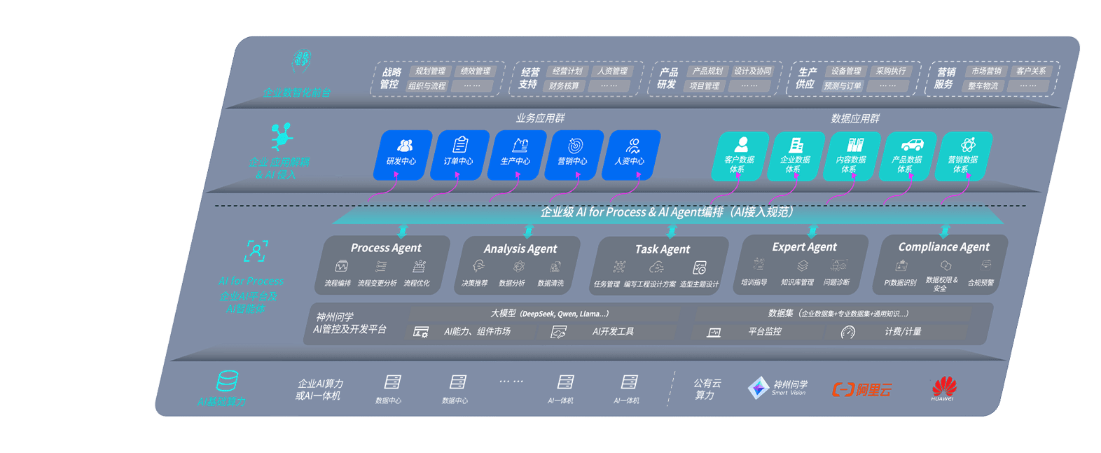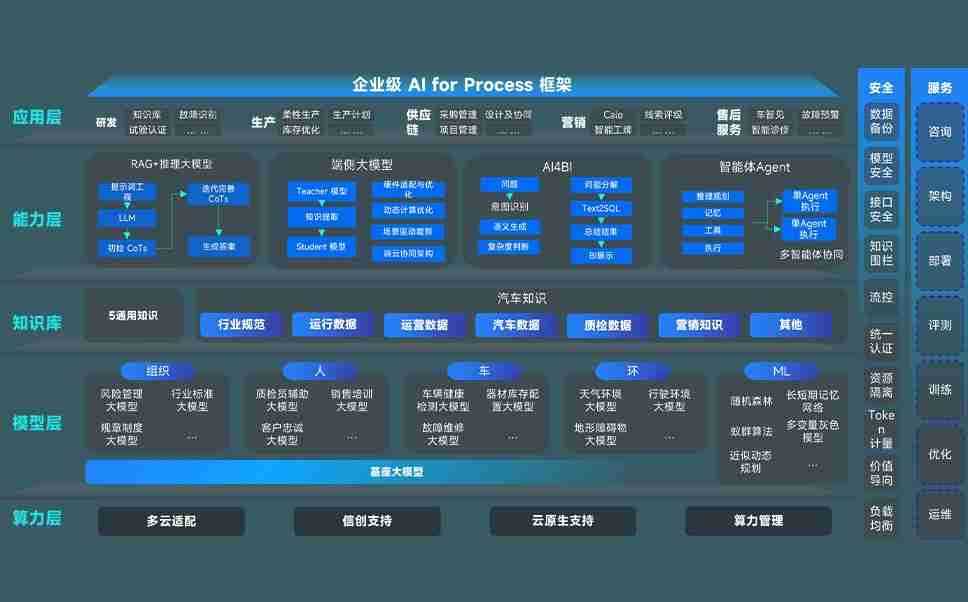 长征娱乐问学智车解决方案是一套基于AI技术的汽车行业智能化系统,,覆盖从底层算力到顶层AI应用的全栈方案。。方案由算力层、、模型层和应用层组成:算力层,,,,方案支持多种一体机配置,,具备云端灵活部署、、多云适配以及动态优化计算资源的能力;模型层,,,长征娱乐问学平台版提供了企业级AI应用一站式构建与管理平台,,,支持基于后训练强化技术的汽车企业专属模型的训练、、评测和运营;应用层,,,,长征娱乐问学DeepSeek版提供包括超级员工、、、、智能招采、、、智能营销、、、、智能客服、、、AI for BI等一系列解决方案,,,可助力汽车行业实现数字化转型,,让管理更智能、、、响应更敏捷。。