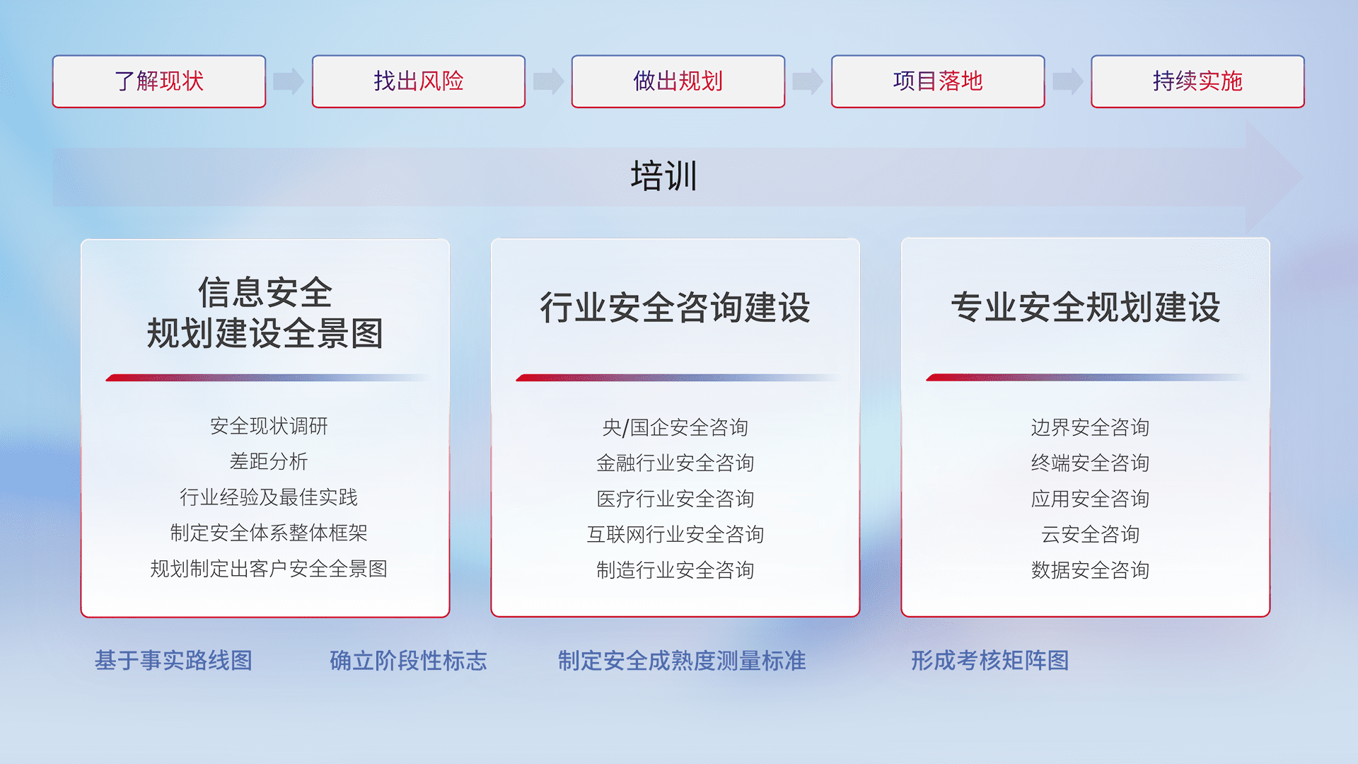 梳理客户信息安全现状调研、、、差距分析结果,,,,结合行业先进经验及最佳实践,,,制订客户的信息安全管控体系总结架构,,最终形成一个完整的客户信息安全规划与建设的全景图。。。