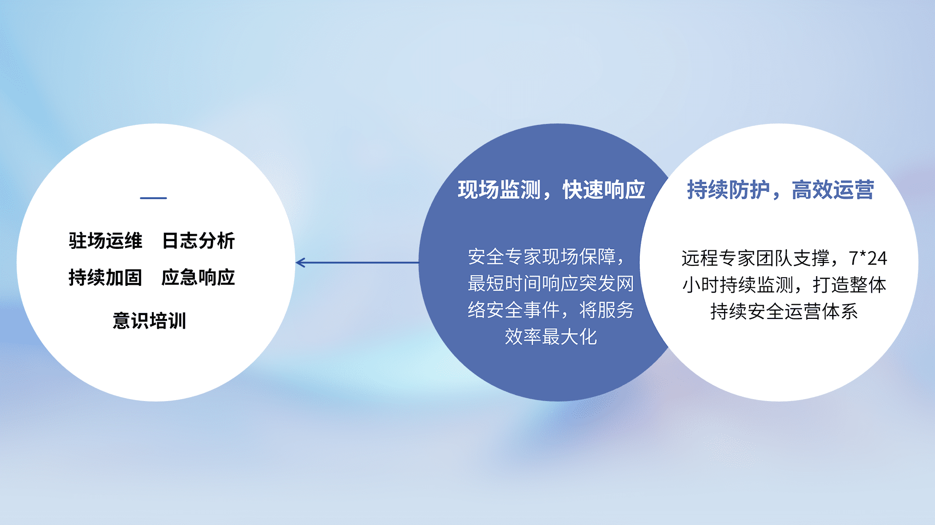 针对客户行业特性,,提供专属的一站式安全管理服务,,,,帮助客户全面感知网络空间威胁,,通过安全专家的线上、、、、线下防护支持,,,,实现风险闭环,,将安全保障常态化,,,为客户打造常态化安全运维运营服务。。